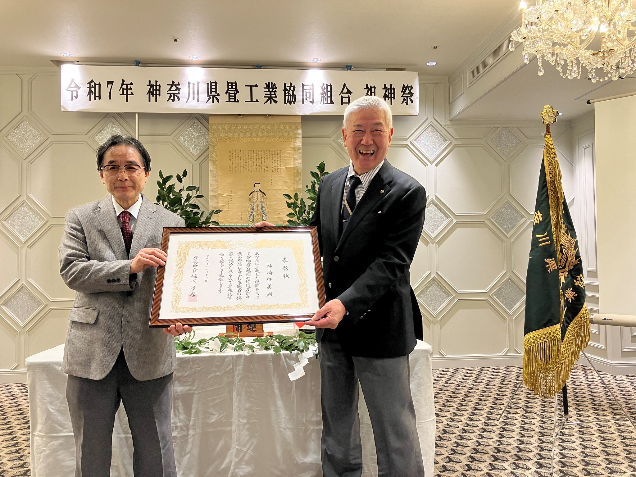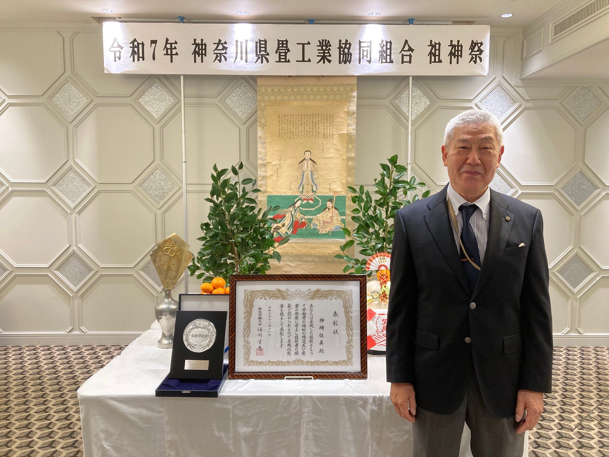 当組合理事長として名誉ある賞をいただき、信頼と実績のある畳組合の組合員を牽引しながら、今度更なる畳業界の発展を目指ていきたいと思います。 代表理事 神崎征美