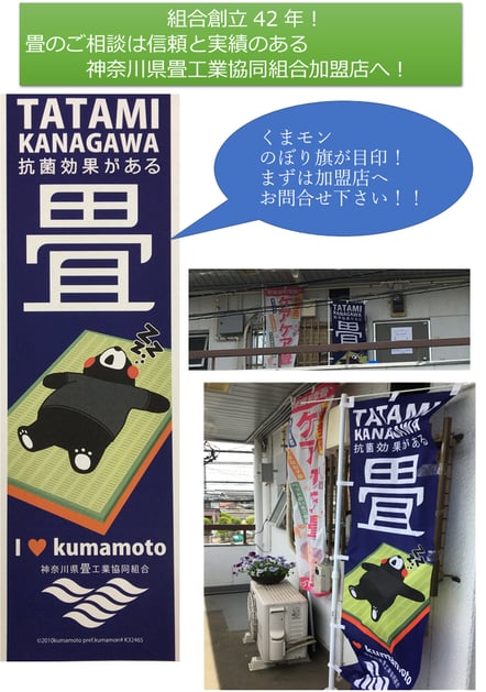 畳替えのご依頼は、信頼と実績のある神奈川県畳工業協同組合の加盟店へ。「がんばれ熊本!!」神奈川県畳工業協同組合は、熊本県や八代市の、いぐさ農家さん復興を応援しています。