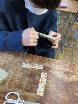 コースターづくりは色々な柄の縁を選びながら楽しそうに作っていました。